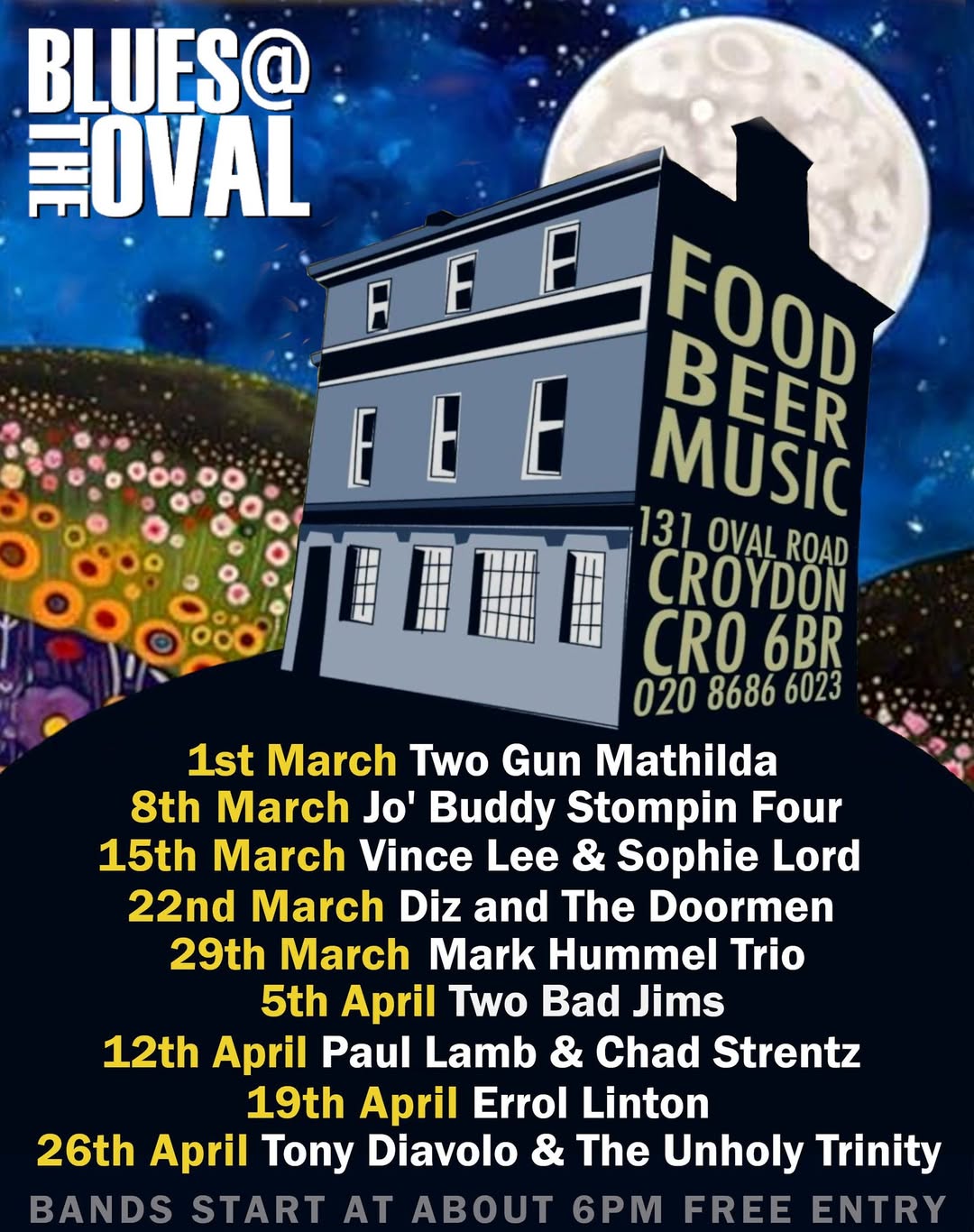 Blues music in March at The Oval Tavern, 131 Oval Road #croydon Mar 6, 2026 · by eastcroydon · in Sport & Leisure. · More information https://www.facebook.com/theovalcroydon Share this: Share on X (Opens in new window) X Share on Facebook (Opens in new window) Facebook Share on Bluesky (Opens in new window) Bluesky Share on Nextdoor (Opens in new window) Nextdoor Like Loading... Related