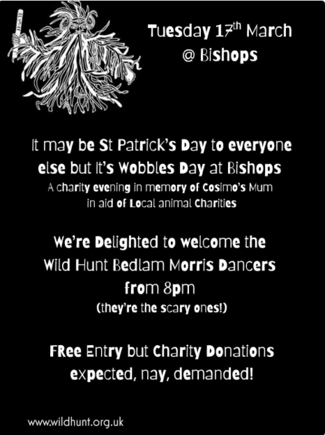 TONIGHT Wild Hunt Morris 8pm Tuesday, 17 March at Bishops Wine Bar, Whitgift Centre #croydon Mar 17, 2026 · by eastcroydon · in Sport & Leisure. · More information https://www.facebook.com/bishopswinebar/?locale=en_GB Share this: Share on X (Opens in new window) X Share on Facebook (Opens in new window) Facebook Share on Bluesky (Opens in new window) Bluesky Share on Nextdoor (Opens in new window) Nextdoor Like Loading... Related