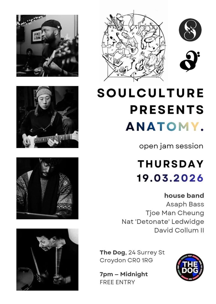 Soulculture jam session 7pm Thursday, 19 March at The Dog & Bull, 24 Surrey Street #croydon Mar 18, 2026 · by eastcroydon · in Get Involved, Sport & Leisure. · More information https://www.instagram.com/soulculture/ Share this: Share on X (Opens in new window) X Share on Facebook (Opens in new window) Facebook Share on Bluesky (Opens in new window) Bluesky Share on Nextdoor (Opens in new window) Nextdoor Like Loading... Related