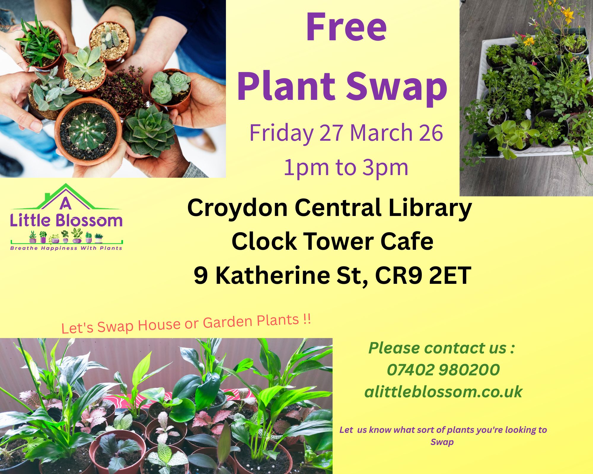 Plant swap 1-3pm Friday, 27 March at Central Library, Katharine Street #croydon Mar 26, 2026 · by eastcroydon · in Environment & Recycling. · More information about A Little Blossom https://alittleblossom.co.uk Share this: Share on X (Opens in new window) X Share on Facebook (Opens in new window) Facebook Share on Bluesky (Opens in new window) Bluesky Share on Nextdoor (Opens in new window) Nextdoor Like Loading... Related