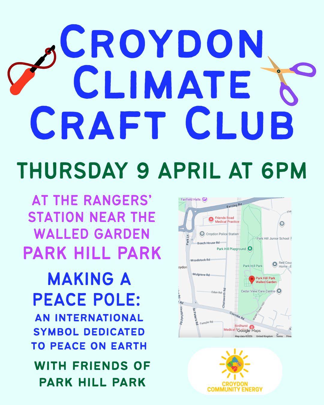 Croydon Climate Craft Club 6pm Thursday, 9 April in Park Hill Park #croydon Apr 7, 2026 · by eastcroydon · in Environment & Recycling, Sport & Leisure, Uncategorized. · More information https://www.facebook.com/FriendsofParkHillParkCroydon Share this: Share on X (Opens in new window) X Share on Facebook (Opens in new window) Facebook Share on Bluesky (Opens in new window) Bluesky Share on Nextdoor (Opens in new window) Nextdoor Like Loading... Related