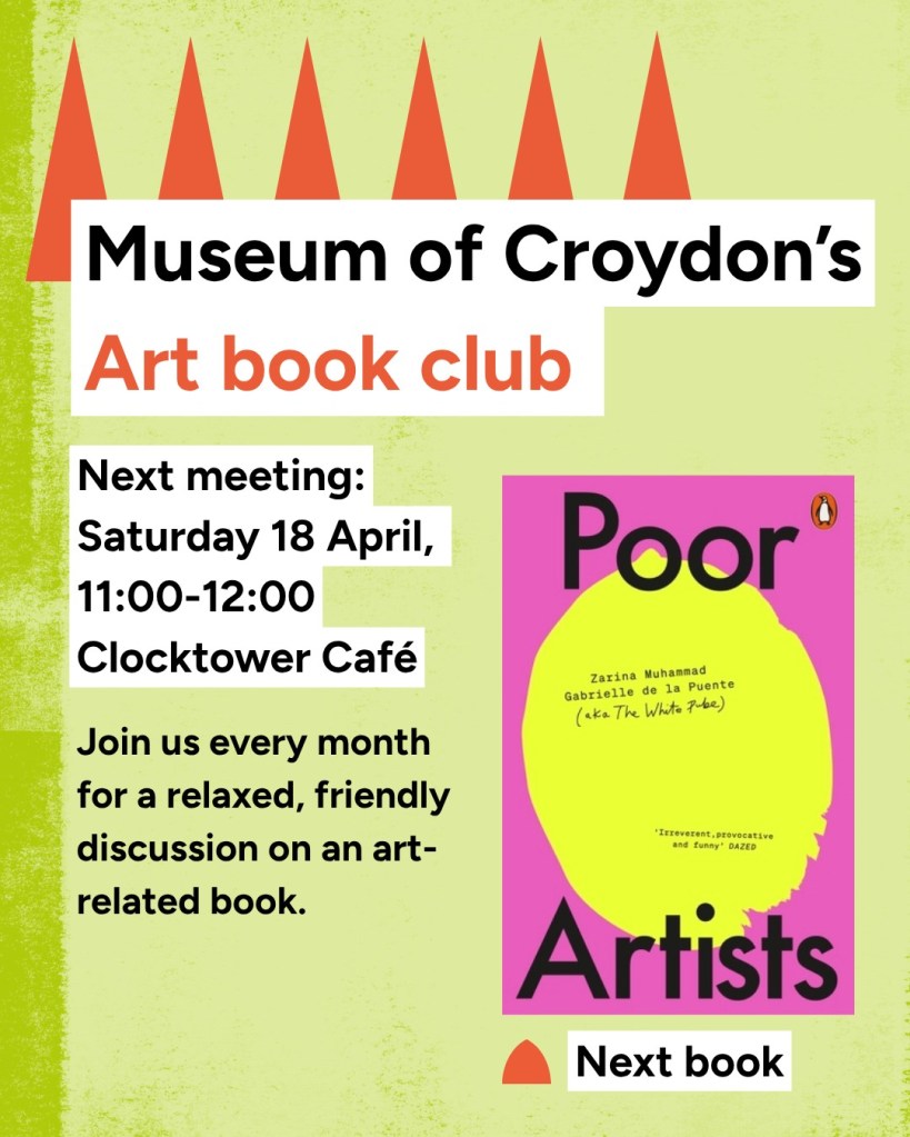 Art book club 11am & science book club 3pm on Saturday, 18 April at Croydon Clocktower, Katharine Street #croydon Apr 17, 2026 · by eastcroydon · in Sport & Leisure. · More information https://libraries.croydon.gov.uk/events/location/48 Share this: Share on X (Opens in new window) X Share on Facebook (Opens in new window) Facebook Share on Bluesky (Opens in new window) Bluesky Share on Nextdoor (Opens in new window) Nextdoor Like Loading... Related