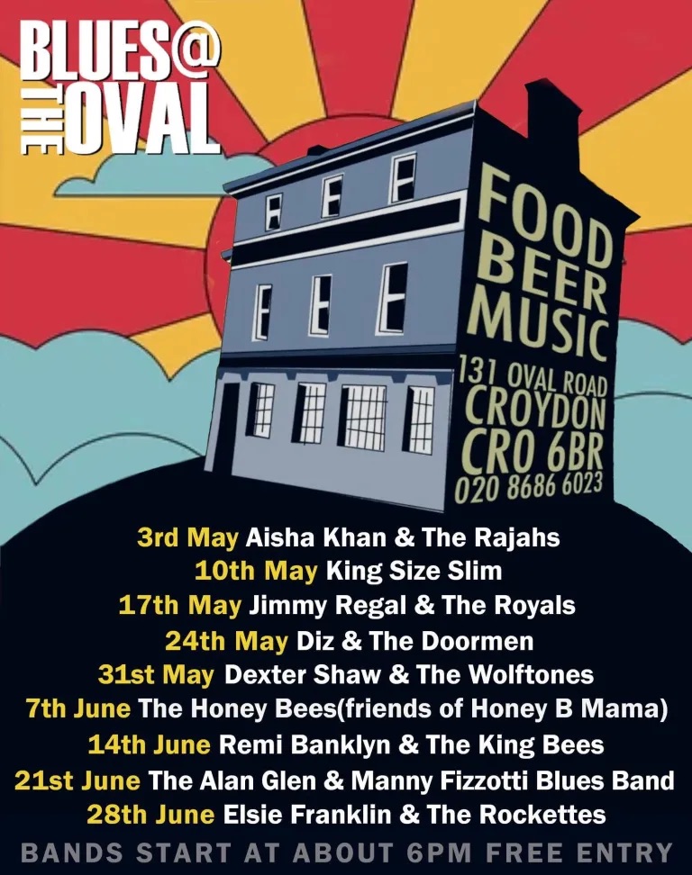 Blues in May & June 2026 at The Oval Tavern, 131 Oval Road #croydon Apr 28, 2026 · by eastcroydon · in Sport & Leisure. · Share this: Share on X (Opens in new window) X Share on Facebook (Opens in new window) Facebook Share on Bluesky (Opens in new window) Bluesky Share on Nextdoor (Opens in new window) Nextdoor Like Loading... Related