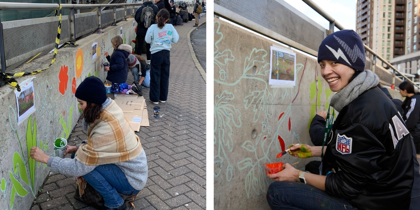 The mural project is a collaboration between a core team of four: Ellie Sandover (of Legacy Youth Zone); Angela Vanegas and Max Kenna (of East Croydon Community Organisation – or ECCO for short); and artist Yvonne Tran (of Chelsea Physic Garden).