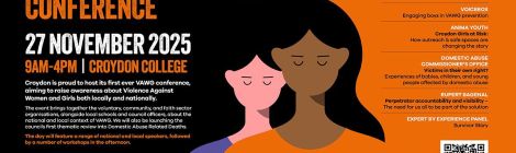 More information and to register https://www.eventbrite.co.uk/e/croydon-vawg-conference-tickets-1780436867599?es_c=C4D270F0A99635011302C9B9C5C22F89&es_cl=1EDE1A20F38E32B9D318AECD8ACCCB17&es_id=p7h£24