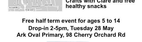 Free children’s activities, 2-5pm Tuesday 28 May @ArkSchools 98 Cherry Orchard Road