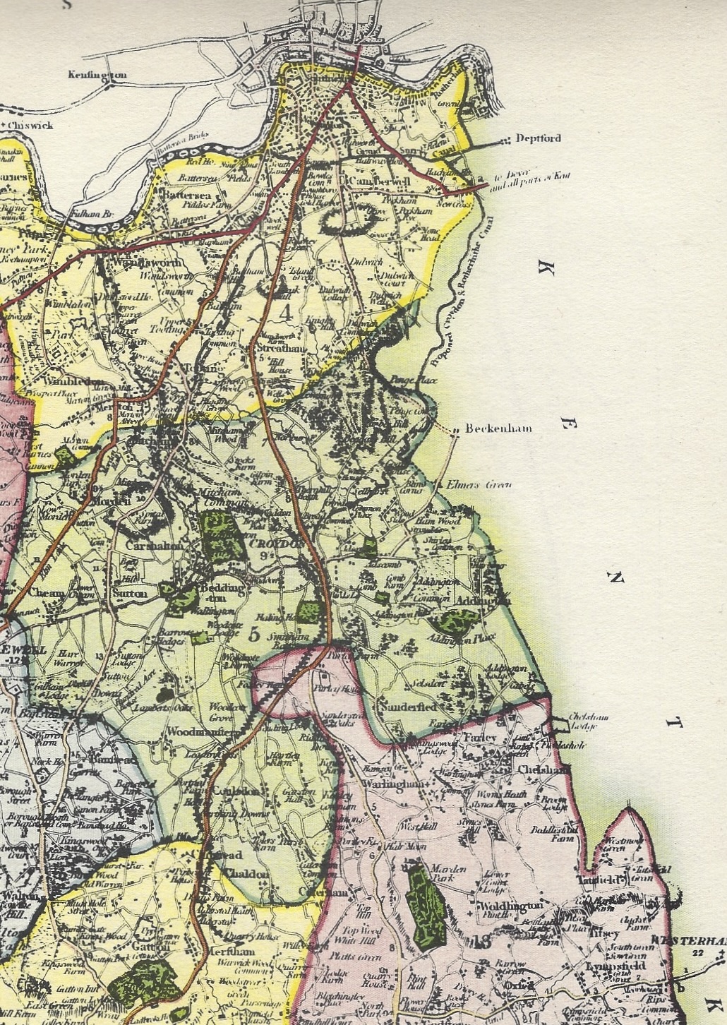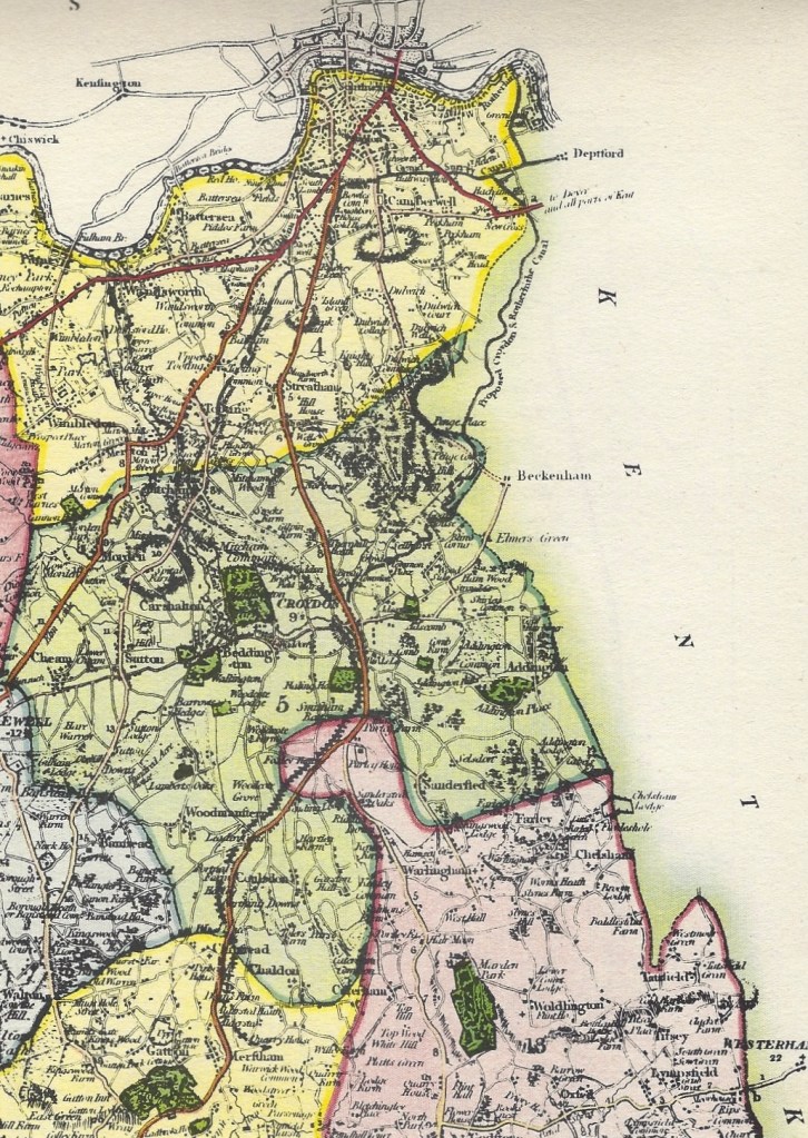 When the London & Croydon steam railway opened in 1839, Hall opened a depot in Croydon, expecting the town to grow and provide a ready market for his goods. Two years later the line ran all the way to Brighton, taking over part of the route of the former Surrey Iron Railway. Hall’s depot, Victoria Wharf, was just north of the bend on Coney Lane (now Cherry Orchard Road). There was already a gravel pit on the site, which Hall continued to dig. Later his company worked a pit on the other side of the road. Gravel was in great demand to surface roads at the time. Indeed, the company later cut through and gravelled Leslie Park Road in 1851.