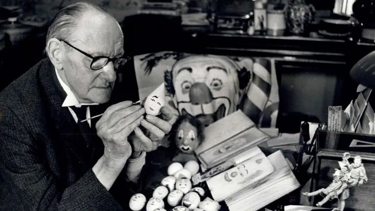 For many years, there was a clown museum in a room in Holy Trinity. It contained a huge number of artifacts, many of them collected by Bult. Sadly, after he died, the majority of Bult’s collection of egg faces was broken or lost. They had been loaned to a West End restaurant which then closed. The tradition almost disappeared but in 1979 it resurfaced, this time using ceramic eggs. About 300 examples, including 24 painted by Bult, are on display at the Wookey Hole museum in Somerset, originally set up by circus impressario Gerry Cottle.