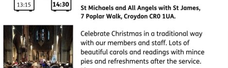 Croydon Mencap Christmas carol service 1.15pm Thursday, 12 December at St Michael & All Angels, Poplar Walk @clubsodacroydon @croydonmencap