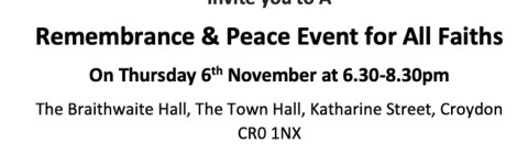 Remembrance & Peace event for All Faiths 6.30pm Thursday, 6 November at Croydon Town Hall, Katharine Street #croydon