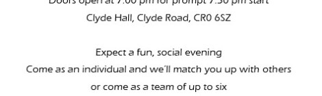 Sign up by Friday 10, October to take part in the Canning & Clyde quiz on 7pm Saturday, 18 October at Clyde Hall, Clyde Road #croydon