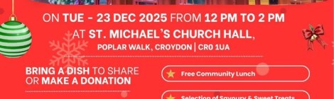 Free Christmas Lunch 12 – 1.30pm, Saturday 23 December in St Michael’s Church Hall, Poplar Walk, West Croydon @FTiCroydon