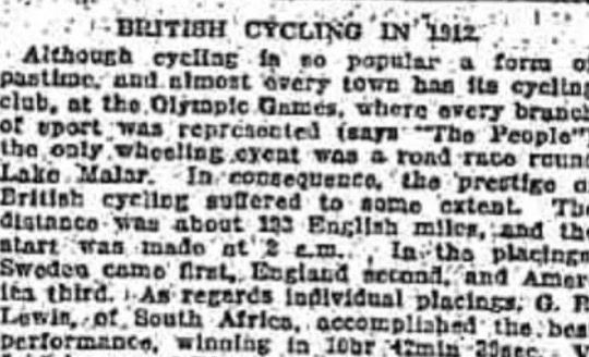 Gruelling: a contemporary report of the single cycling race at the 1912 Olympics