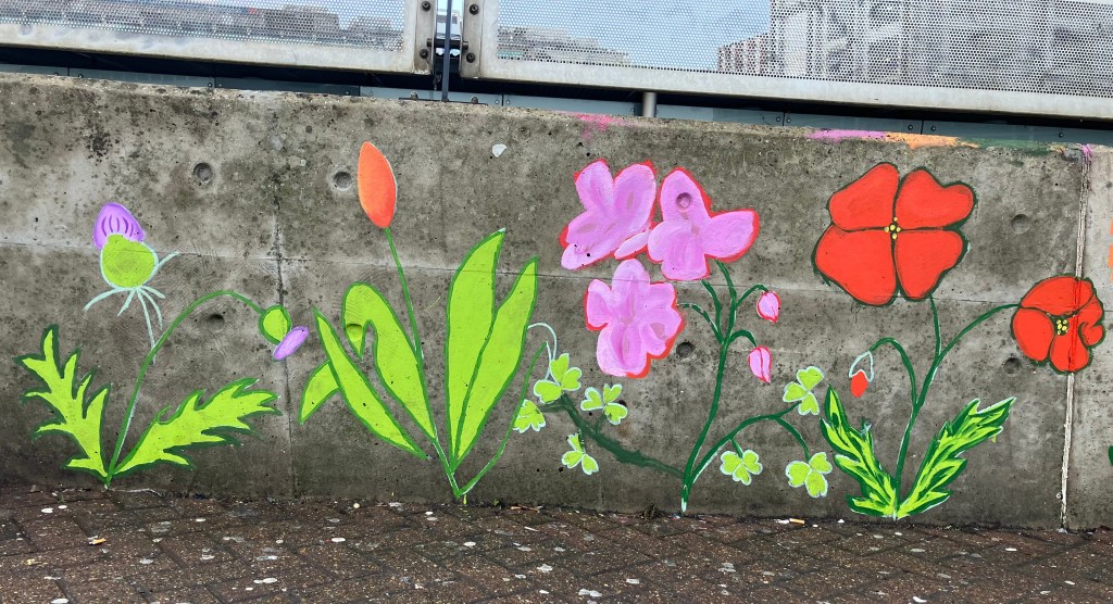 In April 2025, Angela Vanegas began to record the wild flowers she saw while walking in the ECCO area, so that a selection of them could be depicted in a mural on Billinton Hill. The wall is divided into concrete blocks, reaching from the eastern entrance into the station to the bicycle racks. The mural is still a work in progress, but here are some of the species depicted (identified by a local botanist) block by block. The design was created by Yvonne Tran, who has also done much of the painting (assisted by local people) https://eastcroydon.org.uk/2025/11/15/work-continues-on-the-mural-on-billinton-hill-croydon/