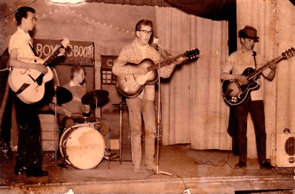 The following year, Wizz formed a skiffle group called “The Wranglers” with Mickey Borer. Roy Hudd asked them to play at one of the Boy’s Club Concerts – their first ever gig. After that they played a regular gig every Friday night at The Leslie Arms (and sometimes at the Orchid Ballroom in Purley, the roller- skating rink in Brixton and at the Granada in Thornton Heat before an early Elvis Presley film). The Wranglers entered a nationwide competition, the winners of which would be given a record contract. They got through to the final heat, only to be beaten by a group called The Spacemen (whose star guitarist was Joe Brown). Each group that entered was given a consolation prize of a 78rpm disc of their performance. In The Wranglers case this was a cover of “Mind Your Own Business” by Hank Williams. When Mickey Borer left the band soon after to join Cliff Bennet and the Rebel Rousers, The Wranglers split up.